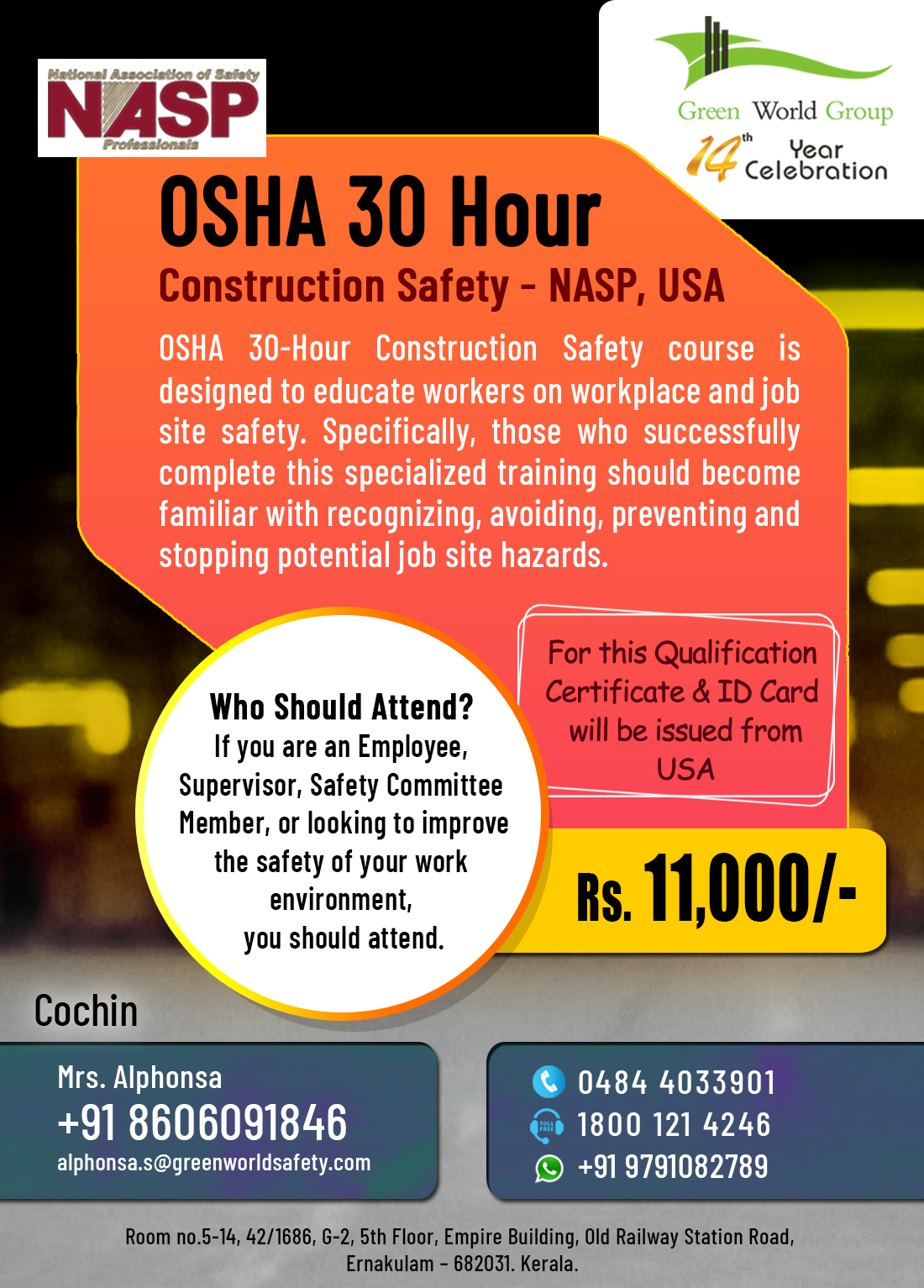 Join the NASP OSHA 30 Hour Construction Training at leading HSE institute – Green World Group